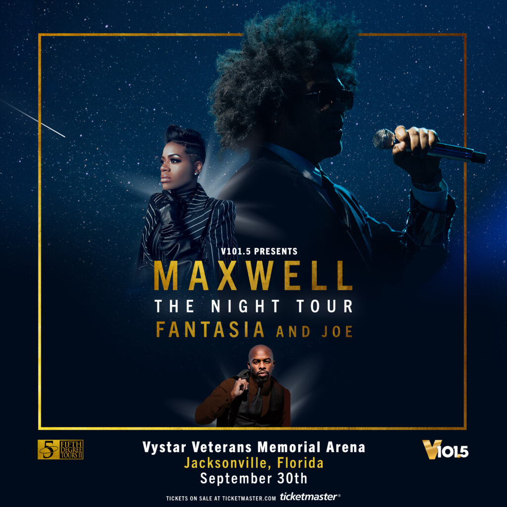 Jacksonville, get ready for an unforgettable night with V101.5 and our favorite R&B stars!JACKSONVILLE, FL, US, August 24, 2022 /EINPresswire.com/ — R&B legend Maxwell brings his wildly popular The Night Tour to Jacksonville, with special guests Fantasia and Joe! On Friday, September 30 fans will experience musical excellence from some of the greatest R&B voices, and it’s all taking place at VyStar Veterans Memorial Arena. This concert is part of the second leg of Maxwell’s The Night Tour, which has been accompanied by the release of blacksummers’NIGHT – the third album in a trilogy Maxwell began in 2009.